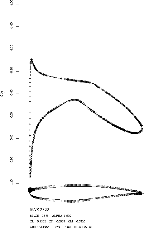 Viscous solution for a low transonic Mach number for the RAE airfoil (case 1)