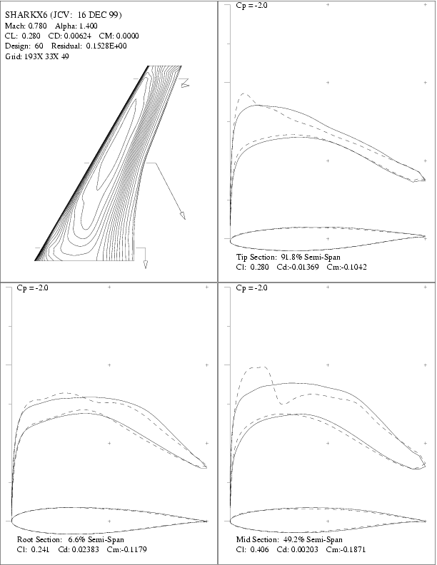 Another test case which attempts to recover the target pressure from a structured grid solution to the SHARK wing is also recovered by this methodology. A parallel version of this program which handles complete aircraft configurations is under development.