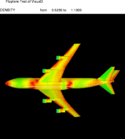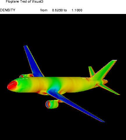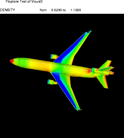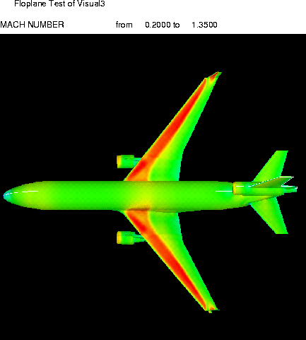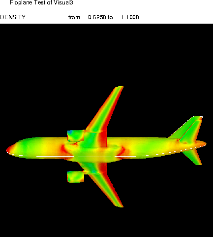 Density and Mach number contours for the Douglas MD11 at a Mach number of 0.825 and angle of attack of 2.5 degrees